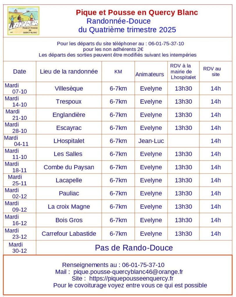 Planning randonnées douce Randonnée douce du quatrième trimestre 2025 RD Quatrième trimestre 2025Télécharger